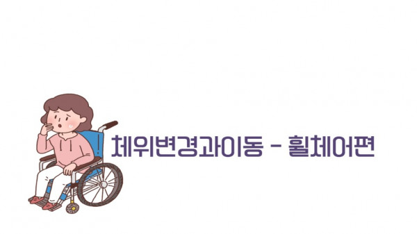 휠체어 앞바퀴를 들어 올려 뒤로 젖힌 상태에서 이동 하기