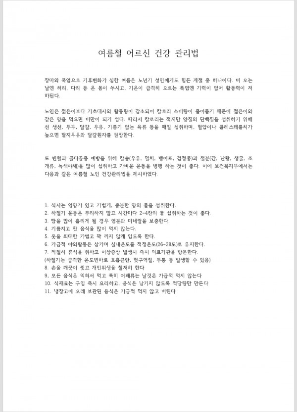 여름철 건강관리법 페이지 정보 작성자 최고관리자 작성일24-05-23 10:47 조회898회 댓글0건 관련링크 이전글 다음글 목록 본문 댓글목록 등록된 댓글이 없습니다. 이전글 다음글 목록